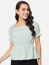 Light Green Solid Square Neck Top for Women