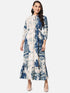Cream Blue Tie-Dye Tie-up Neck Dress for Women