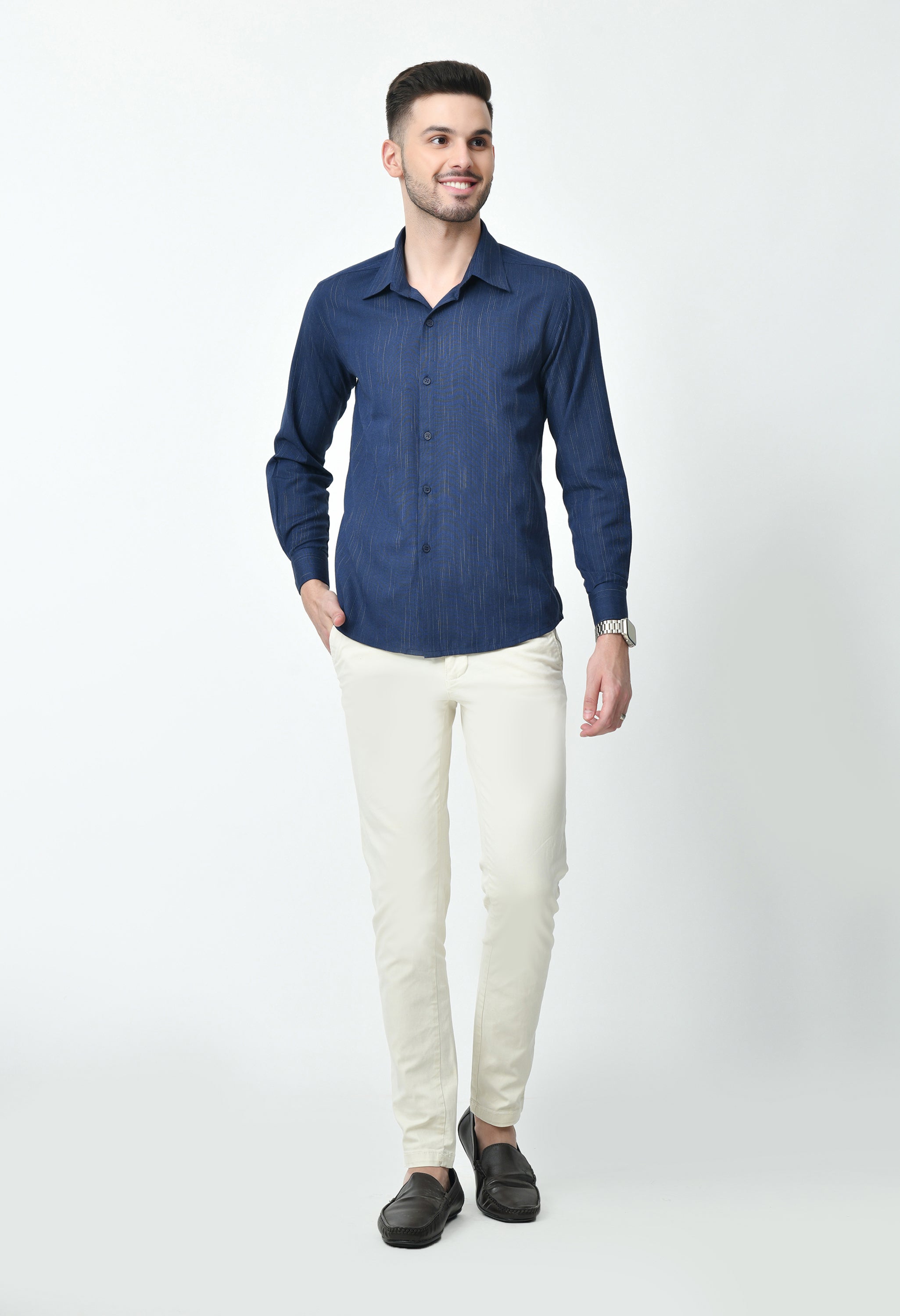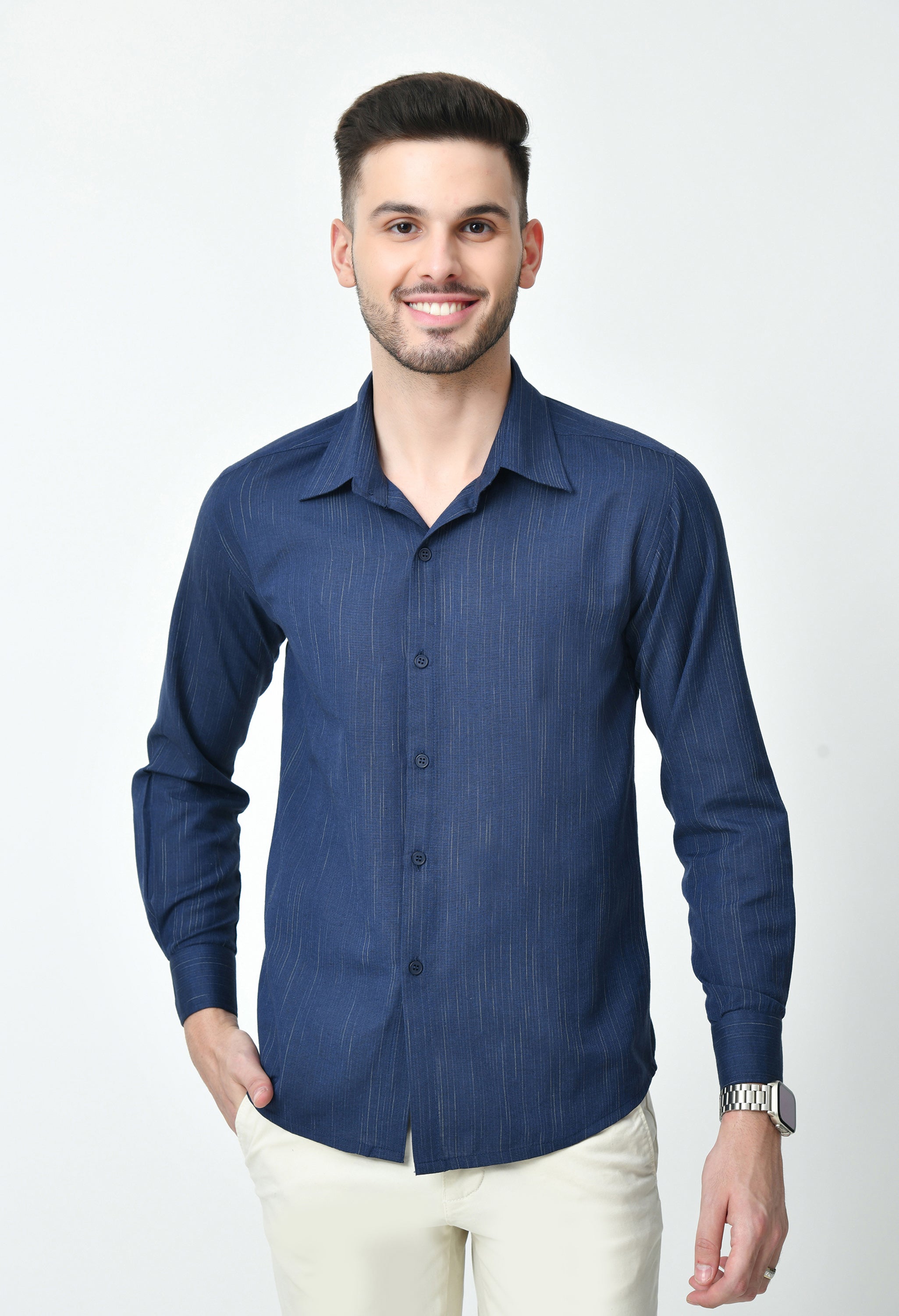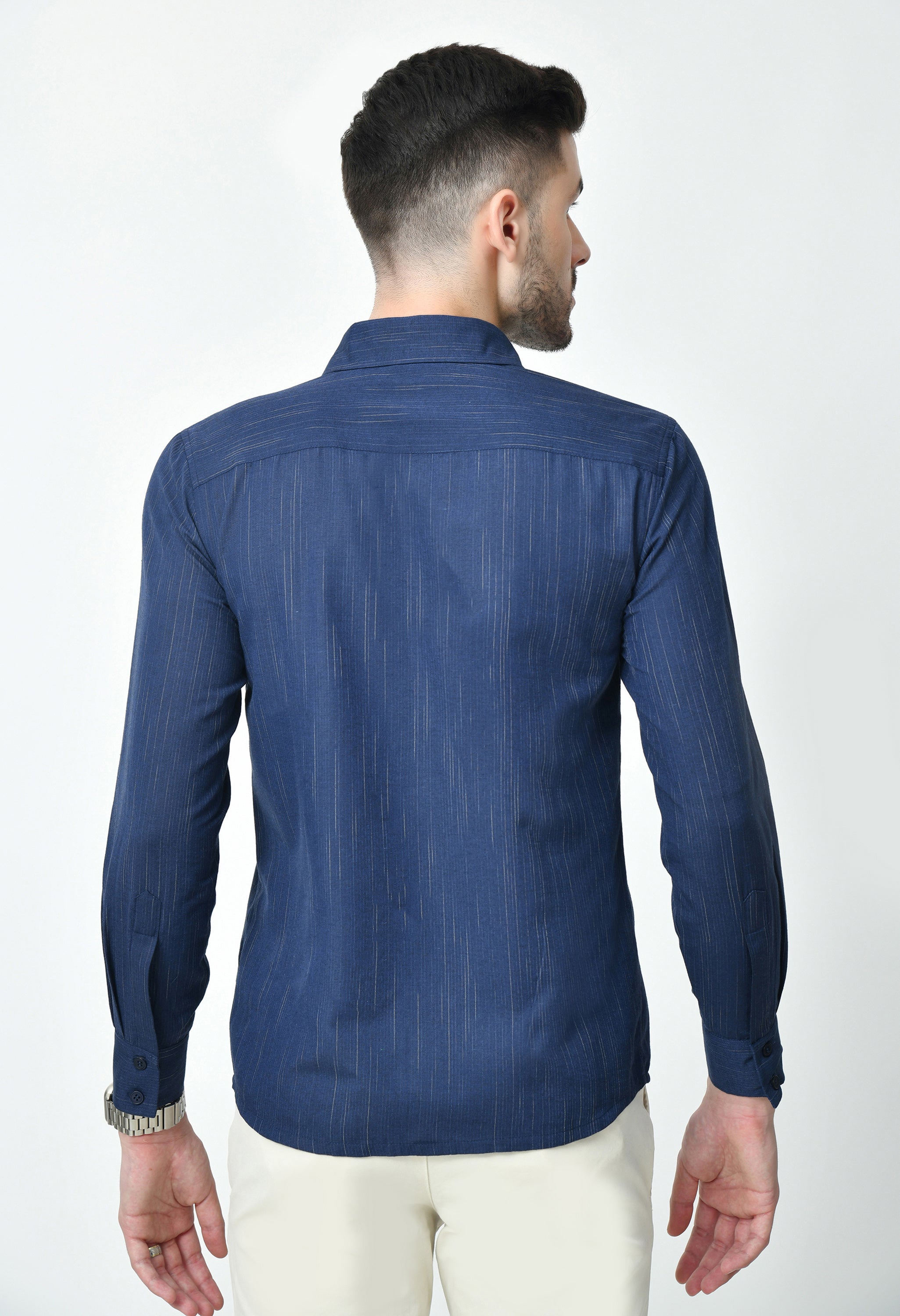 Blue Self Design Full Cuff Sleeve Cotton Blend Shirt for Men