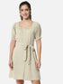 Elevate your wardrobe with our Beige Solid Half Sleeve Dress for Women. This poly crepe dress features a square neck and hits above the knee, making it a versatile piece for any occasion. Its half sleeves offer comfort and style, making this an essential addition to your closet.