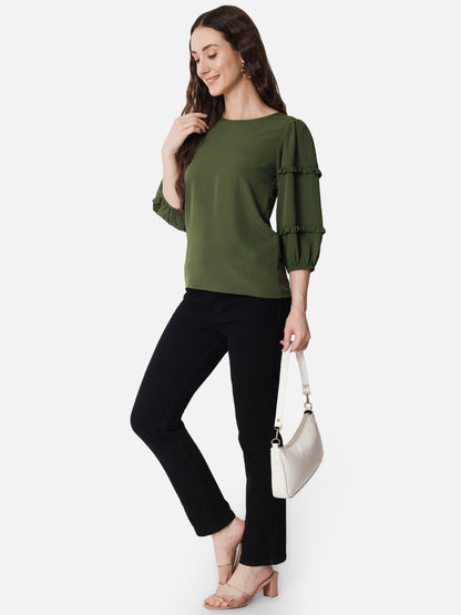 This solid round neck top for women is a versatile and stylish addition to any wardrobe. Made with high-quality materials, it offers a comfortable and flattering fit. The solid color and classic round neck design make it easy to pair with any outfit, making it a must-have for any fashion-savvy woman.