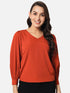 Solid Rust V-Neck Top for Women