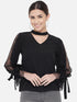 Discover the perfect blend of style and comfort with the ALL WAYS YOU Black Solid Net Sleeve Choker Neck Top for Women. Made from a soft and breathable fabric, this top features net sleeves and a choker neck, giving you a chic and sophisticated look. Perfect for any occasion, always look and feel your best with this versatile top.