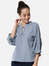 Expertly crafted with a tie-up neck design, the ALL WAYS YOU Light Blue Solid Top adds a touch of elegance to any wardrobe. Made of high-quality fabric, this top drapes beautifully and provides comfortable all-day wear. Elevate your style with this versatile and timeless piece.