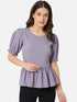 This Purple Solid Round Neck Top for Women features a smocked fabric, providing a unique and stylish look. With its round neck design, this top offers a comfortable and flattering fit for any body type. Elevate your wardrobe with this must-have piece.