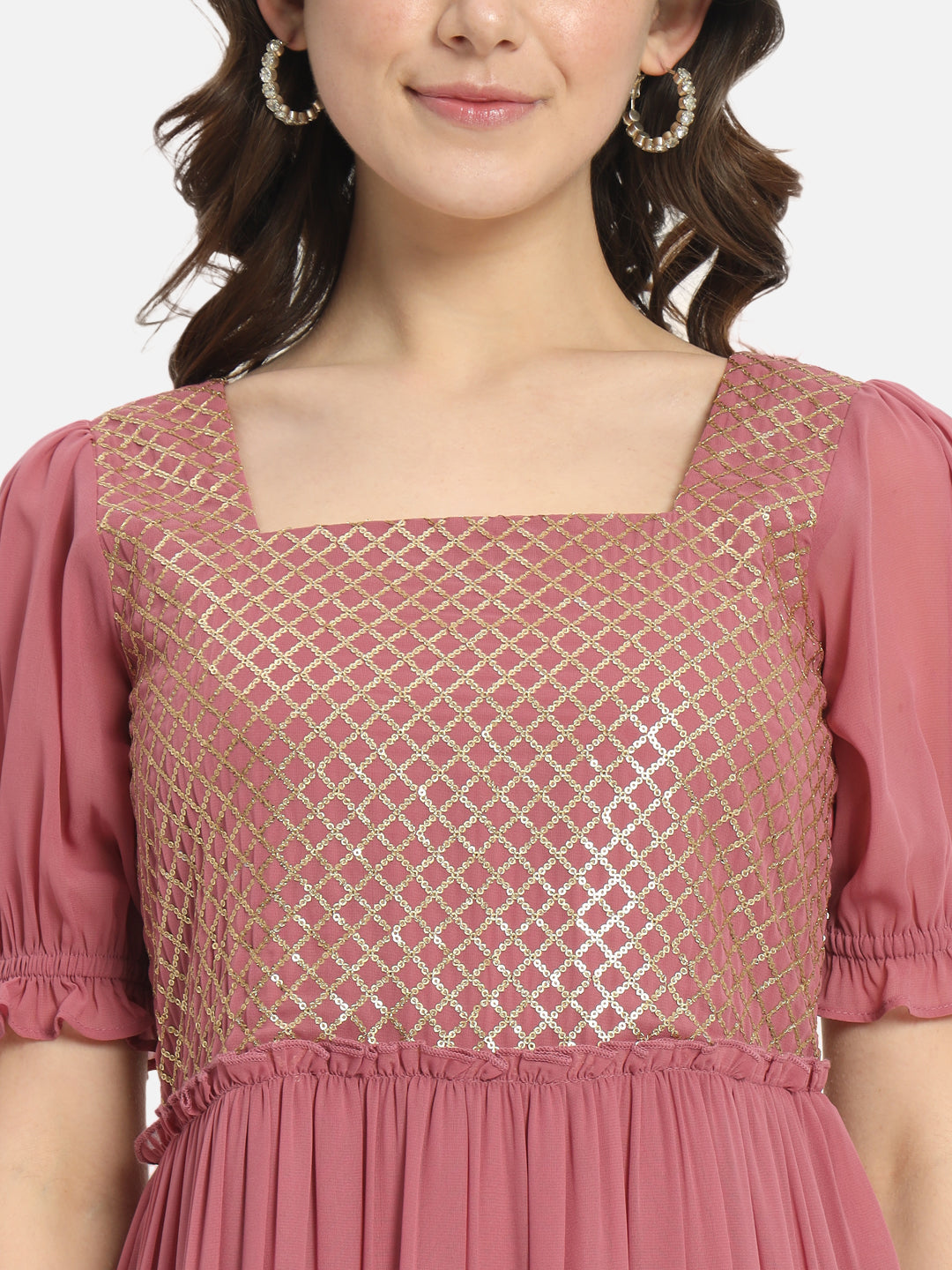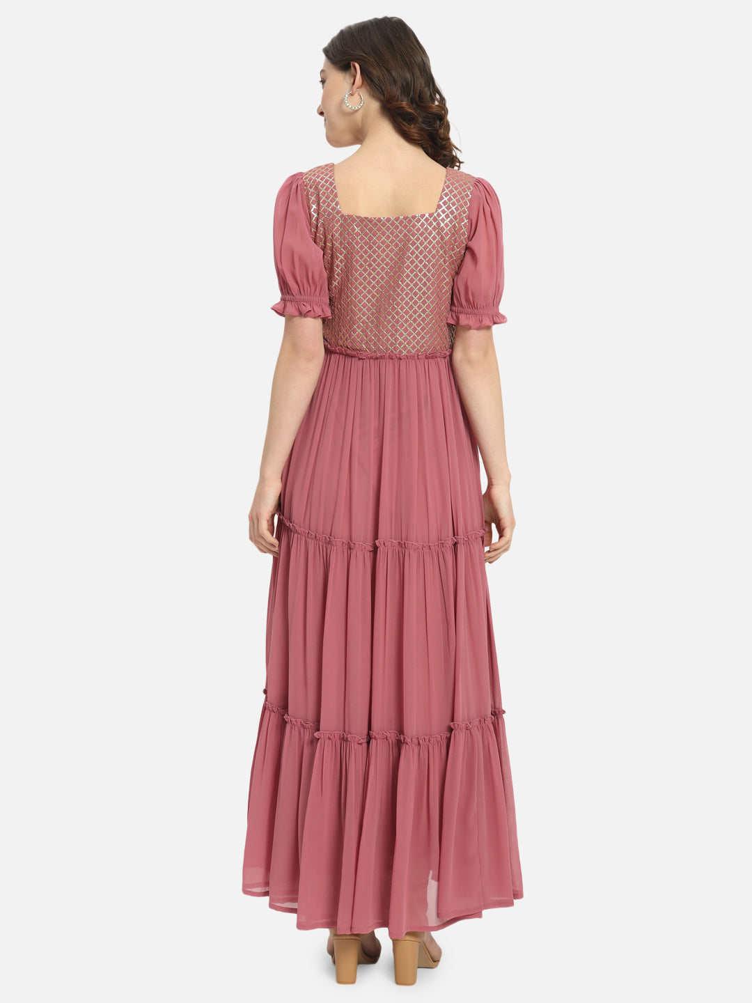 Embellished Pink Half Sleeve Ankle Length Dress for Women