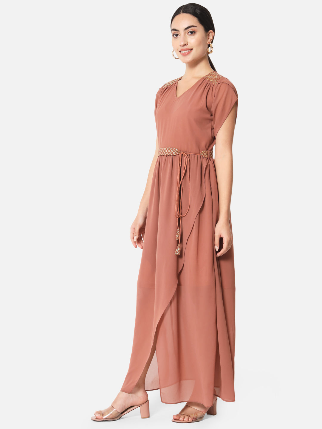 This Solid Half Sleeve Ankle Length Dress for Women is made out of poly georgette material, providing a comfortable and lightweight feel. The ankle-length style adds a touch of elegance, making it perfect for any occasion. The solid color and half-sleeve design make it versatile and easy to dress up or down.