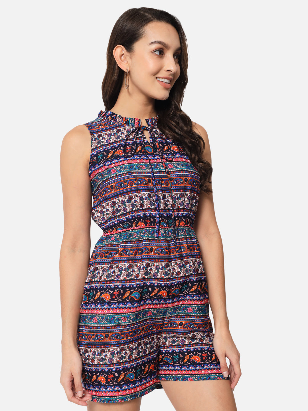 Sleeveless Printed Poly Crepe Playsuit for Women