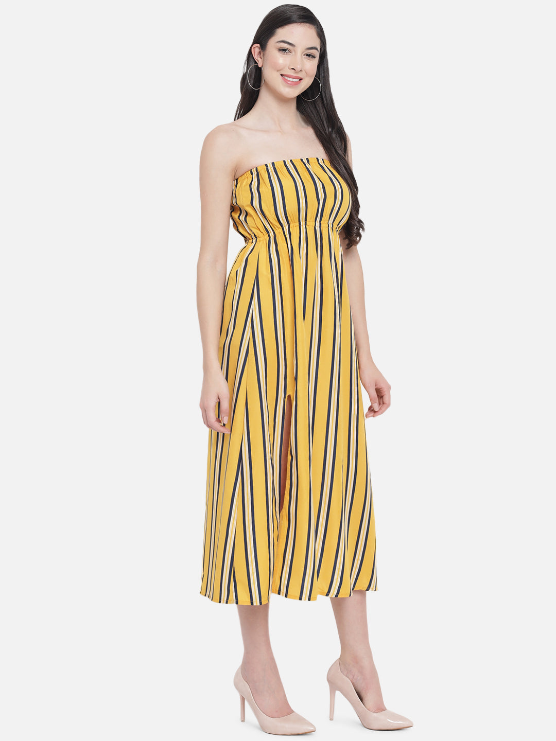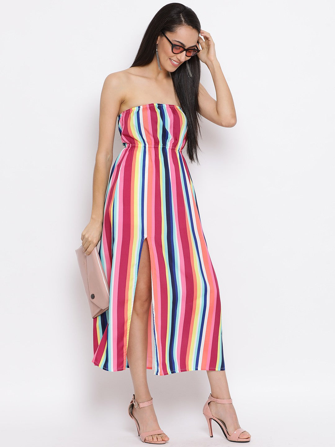 Effortlessly chic and comfortable, our Stripes Sleeveless Tube Dress for Women is a must-have piece for your wardrobe. Made with soft and durable poly crepe fabric, it features a stylish striped design and a flattering sleeveless cut. Perfect for any occasion, this dress will keep you looking and feeling your best.