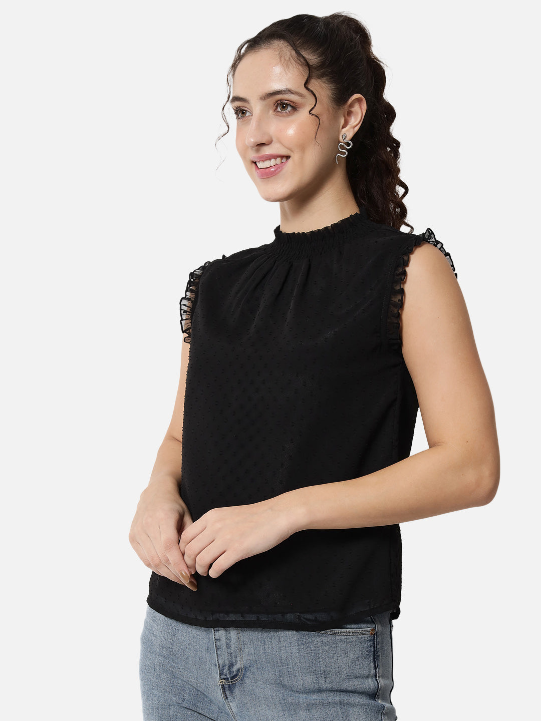 Swiss Dot Sleeveless Poly Georgette Top for Women