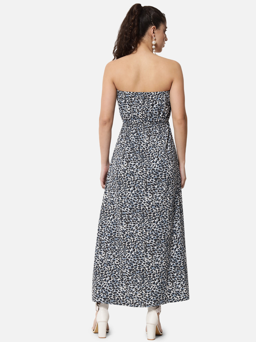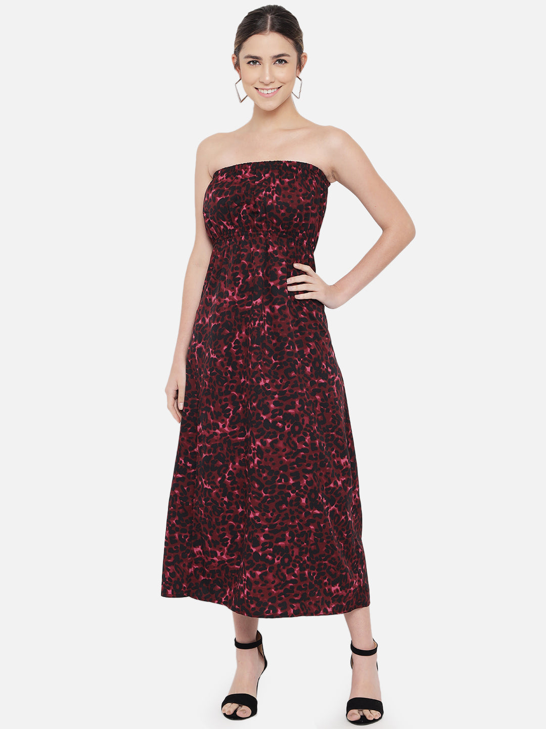 This tiger print sleeveless tube dress for women is made from high-quality poly crepe material and features an effortlessly chic off shoulder neck. With its bold tiger print design, this dress is perfect for adding a touch of wild flair to your wardrobe. Experience comfort and style with this versatile dress.