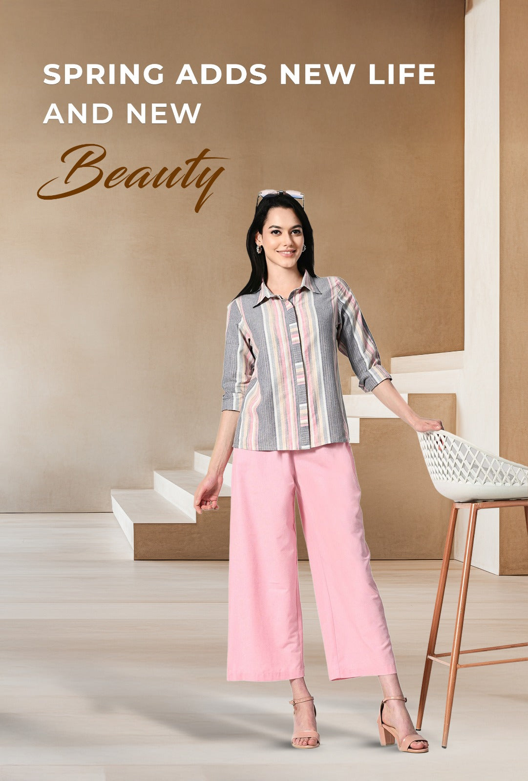 Self-Design Regular Fit Straight Palazzo for Women- Regular price